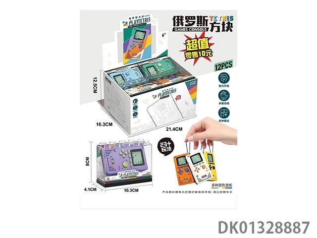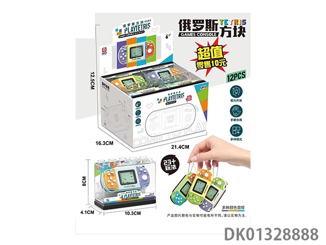 Brand new tetris game console with multi-color mixed packaging and hanging chain (12 small boxes/display boxes)