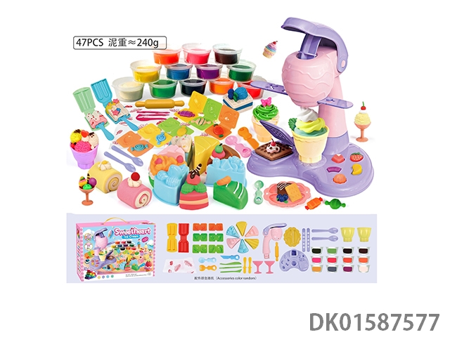 Cake and dessert with small square plate and colored clay
