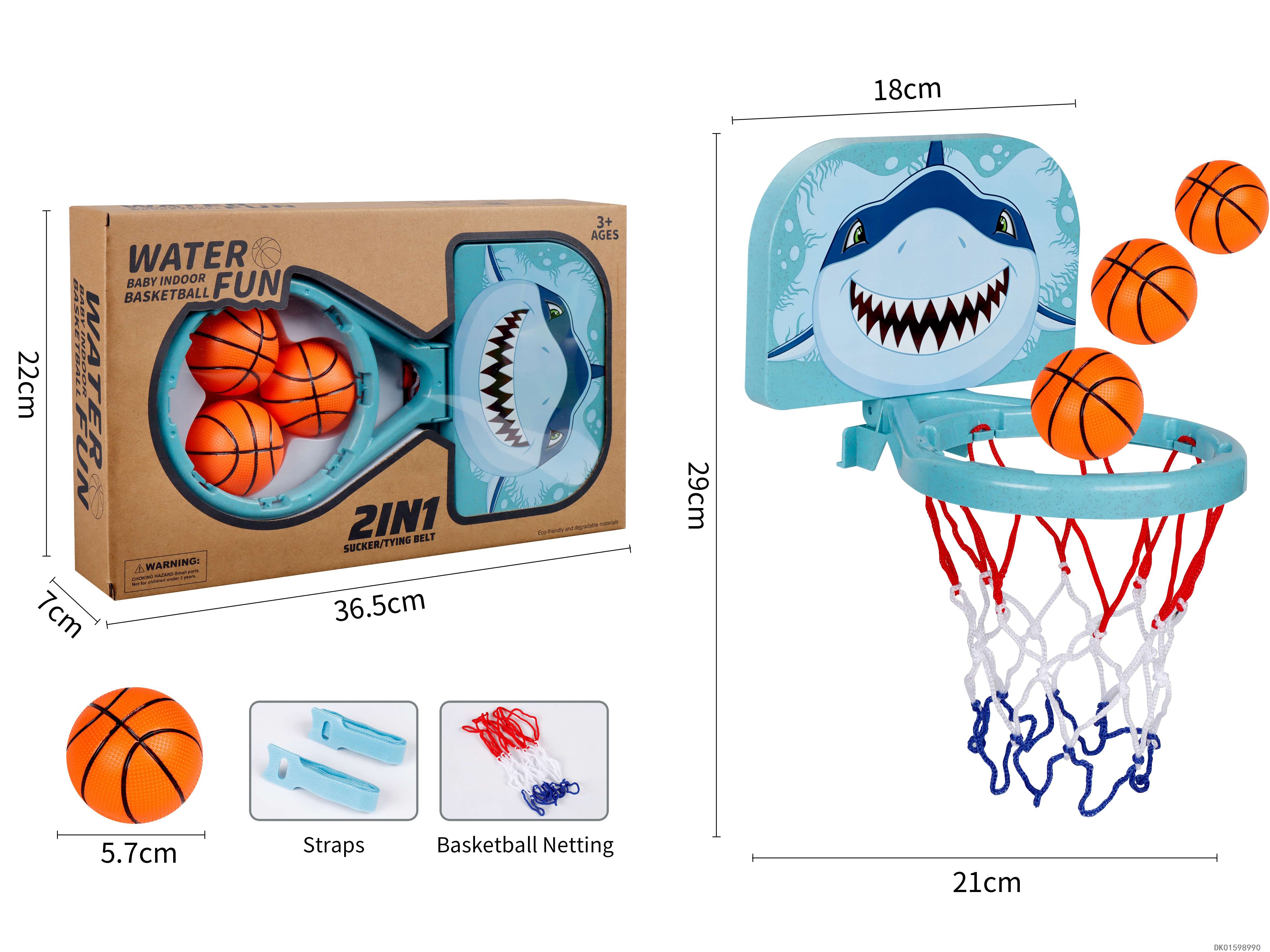 2-in-1 bathroom basketball toy shark straw pellets