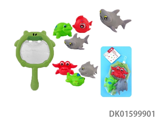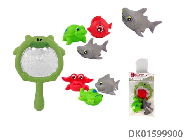 Hippo Net Fishing (Ocean Water Play Set: 4PCS) 2 Mixed Models) Baby Toys Vinyl Bathroom Bath Vinyl Animal Vinyl Fishing Fish