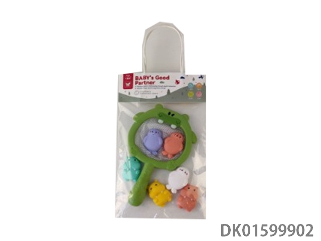 Hippopotamus Net Fishing (Little Hippopotamus Seal Water Play Set: 7PCS) Baby Toys Vinyl Bathroom Bath Vinyl Animal Vinyl Fishing Fish
