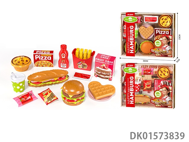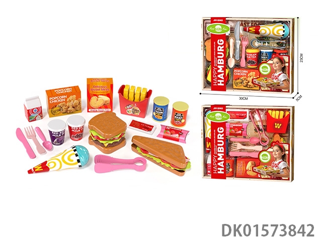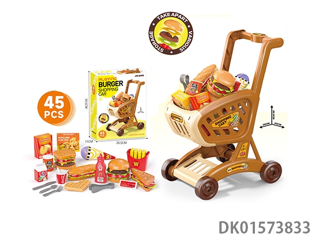 Big shopping cart, hamburgers, playing house, toys
