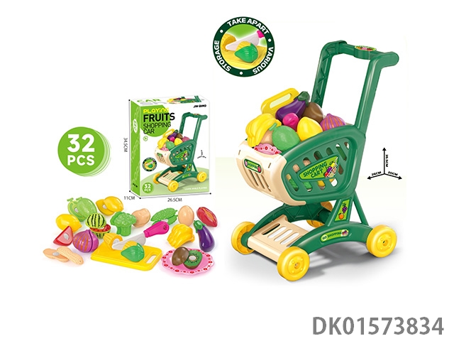 Big shopping cart, fruits, joy, playing with toys at home