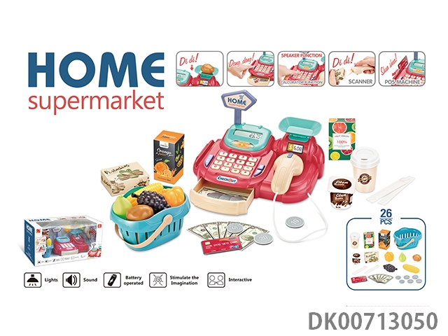 Luxury supermarket combination set and live scanner, cash register, card reader (2 aaa and 2 aa do not pack electricity, 2 ag13 pack electricity), with shopping basket