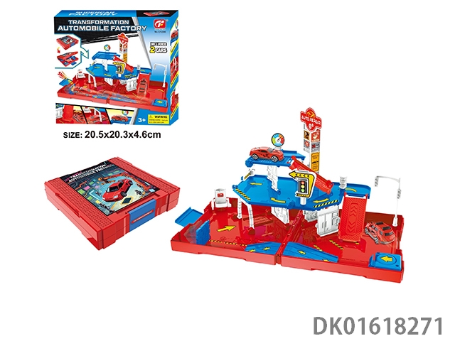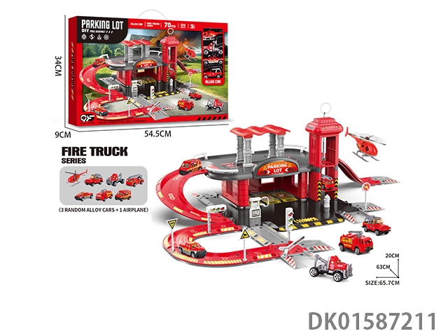 Playing house storage alloy fire parking lot (with 1 alloy car) (with 1 set of road signs) (36pcs)