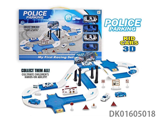 Playing house storage alloy police car parking lot (with 1 alloy car) (with 1 set of road signs) (36pcs)