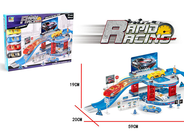 Play house storage alloy sports car parking lot (with 1 alloy car) (with 1 set of road signs) (36pcs)