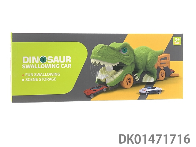 Dinosaur devouring car and 6 sliding alloy cars