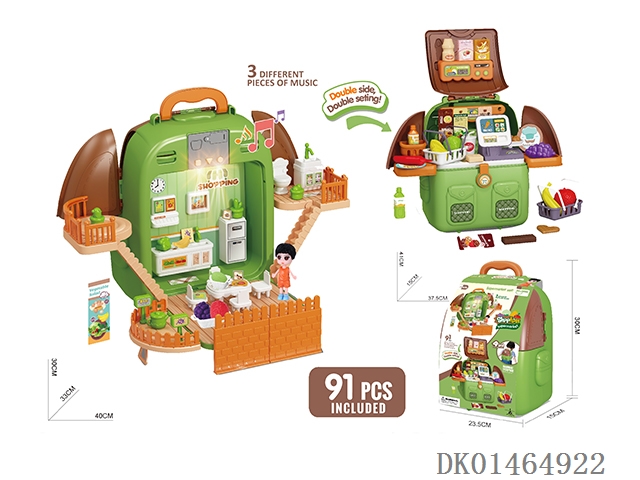 Playing house 4-in-1 transformable supermarket scene backpack with lighting and music (91pcs)