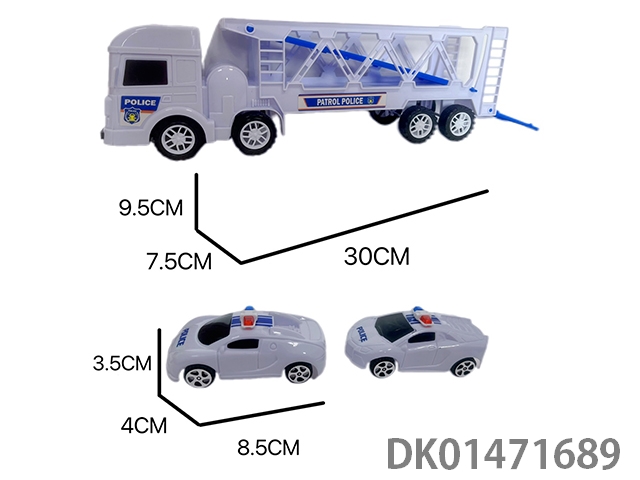 Inertial tractor trailer simulation cartoon police car