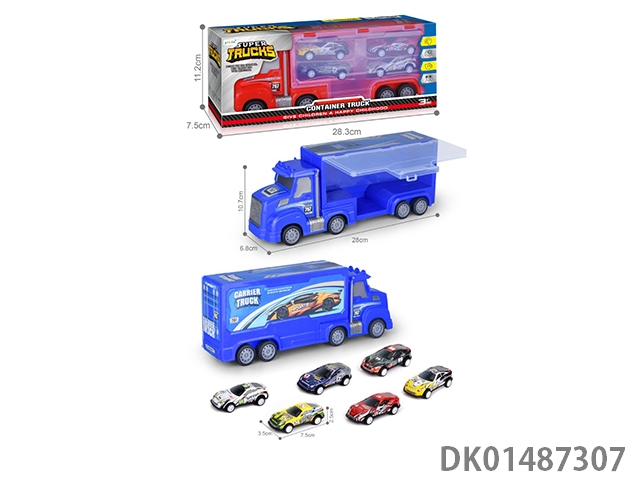 Dinosaur devouring car and 4 alloy sliding cars