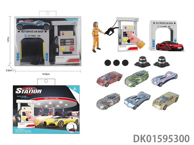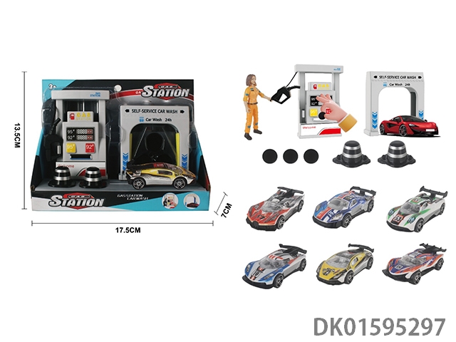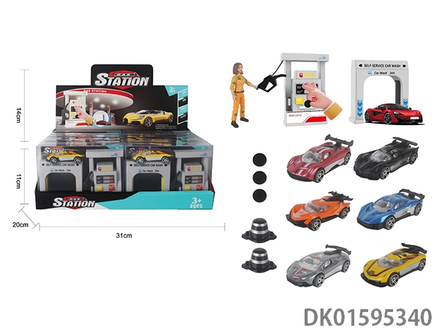 Gas station car wash scene combination with catapult 1:64 alloy racing car