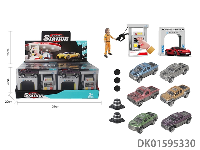 1: 64 Gas station car washing scenarios, 6 off-road vehicles (12pcs/box)