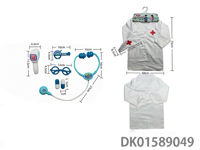Cross border children’s diy clothing role-playing round label doctor’s uniform and 7-piece set (thick version) white