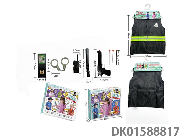 Cross border children’s diy clothing role-playing police reflective vest and 8-piece set (thick version) (color box version) black