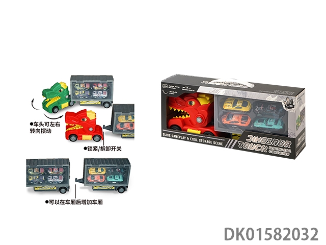 Dinosaur trailer truck slide rail storage container truck (the front of the truck can be turned and multiple compartments can be spliced, paired with a 4-alloy truck)