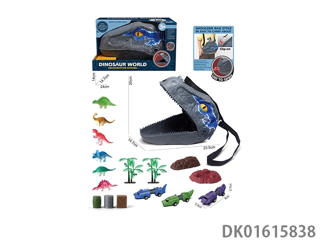 Velociraptor storage backpack with 6 dinosaur cubs, 3 telescopic carts, and accessories in one bag