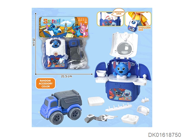 Stitch playing with his family, one shoulder backpack and inertia car