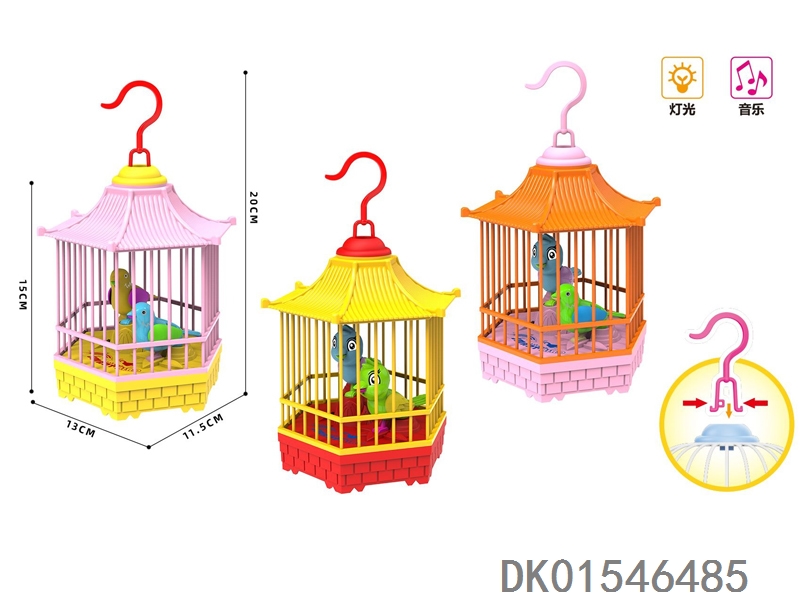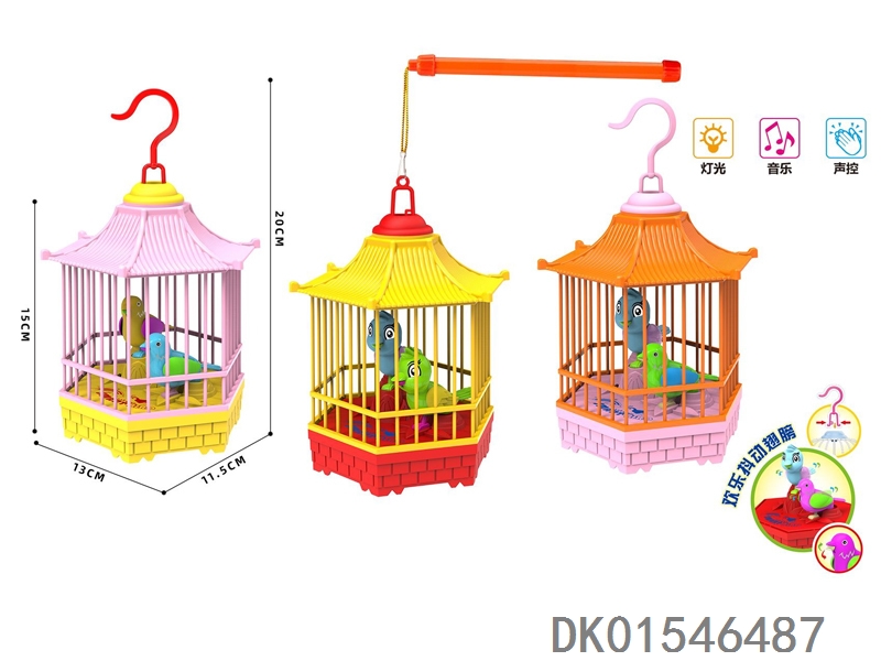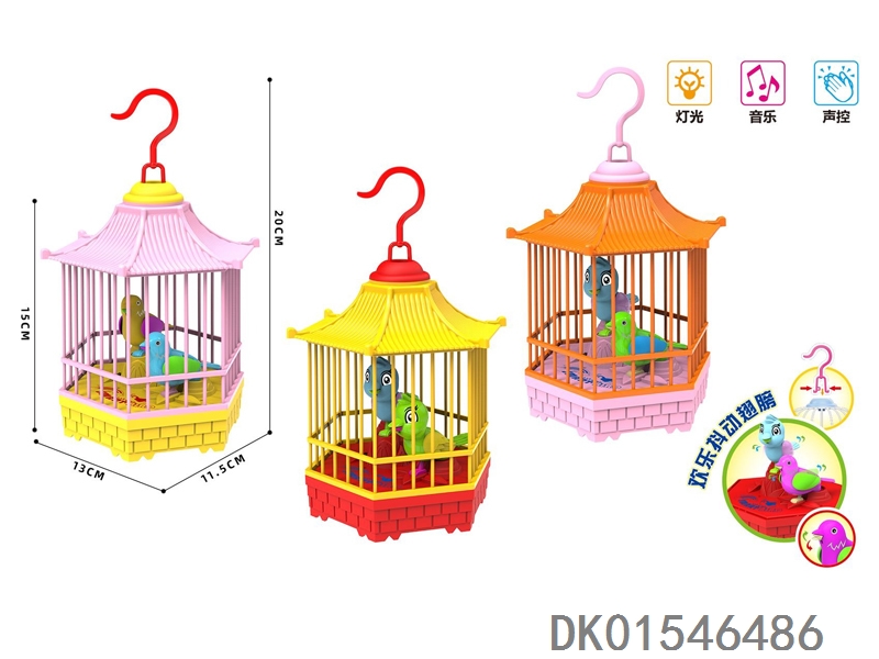 Electric lighting, music, voice control, hexagonal birdcage with lantern handle