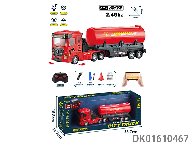 2.4G 6-way remote control fire water tank truck (with lights, music, and electricity included)
