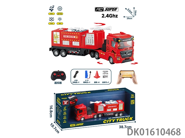 2.4G 6-way remote control fire water cannon truck (with lights, music, and power)