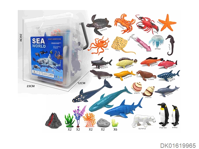 26 Marine animals and 8 accessories in a super large bucket