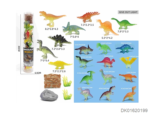 High cylinder 8 and 12 luminous small dinosaurs