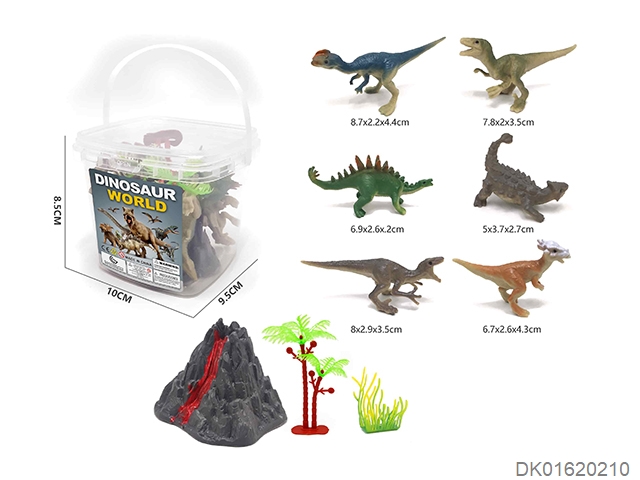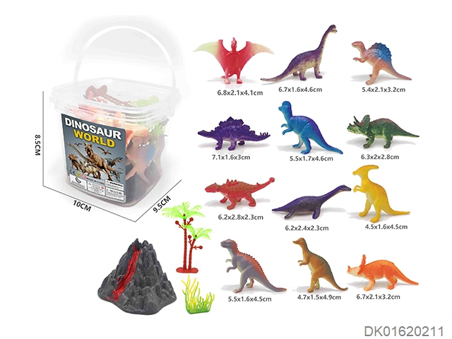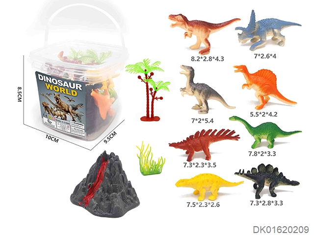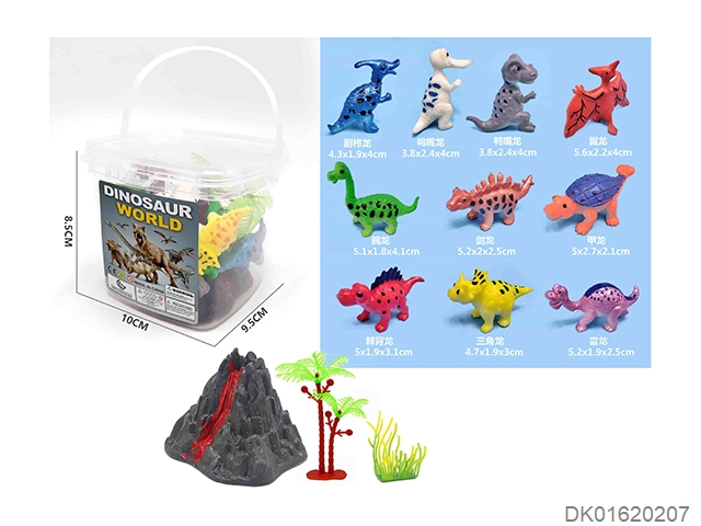 10 Cartoon painted dinosaurs in a small square bucket