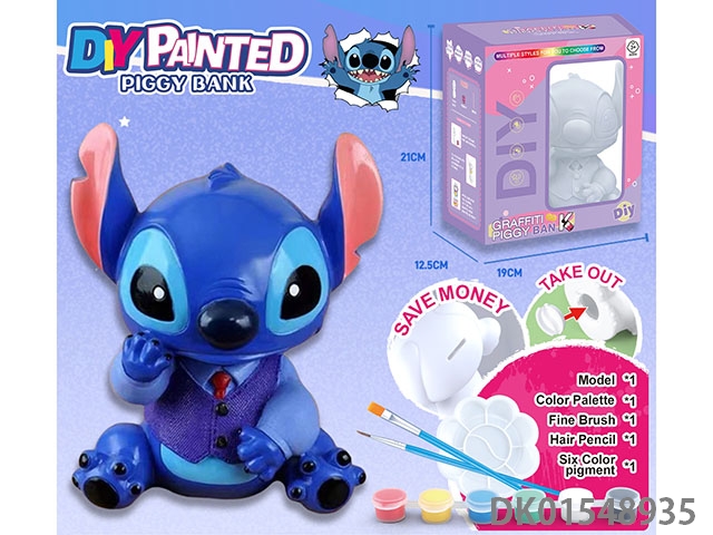 Diy painted piggy bank - suit stitch