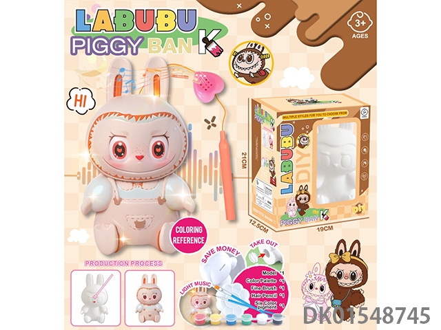 Diy painted piggy bank, music handheld lantern - dragging sister