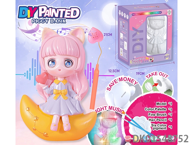 Diy painted piggy bank music handheld lantern - moon girl