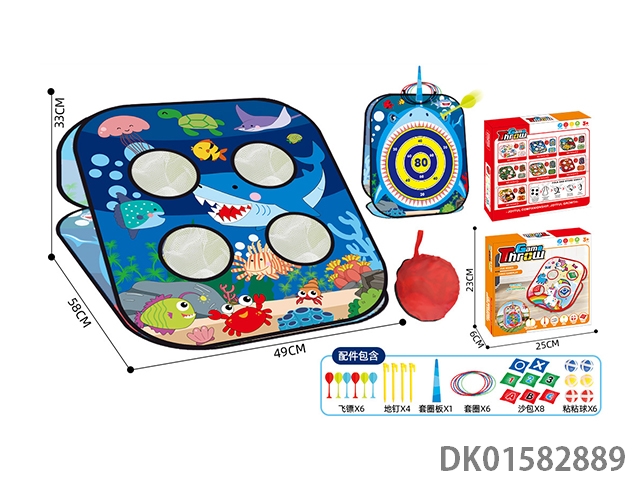 五合一收纳折叠鲨鱼款沙包飞标投圈粘粘球体育玩具