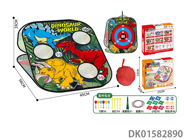 五合一收纳折叠恐龙款沙包飞标投圈粘粘球体育玩具