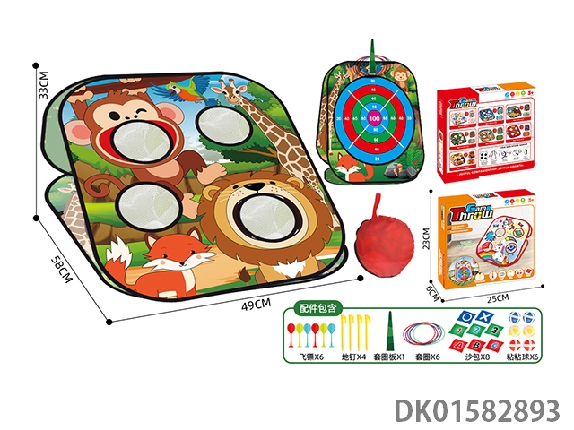 五合一收纳折叠动物款沙包飞标投圈粘粘球体育玩具