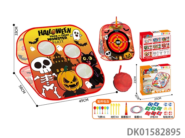 五合一收纳折叠万圣节沙包飞标投圈粘粘球体育玩具