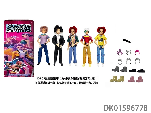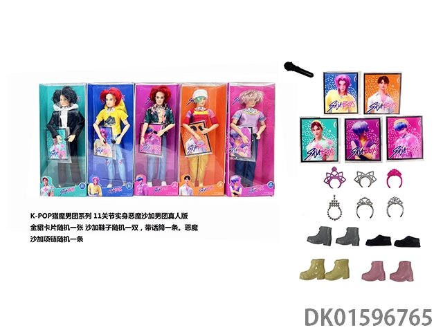 1比1 K-POP 猎魔男团真人版 11.5寸11关节实身 5人猎魔男团 带金貂卡片一张 带项链 带话筒