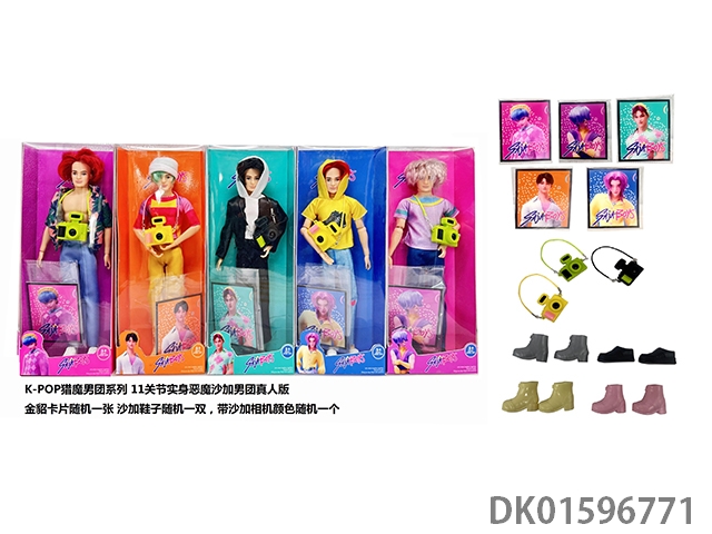1比1 K-POP 猎魔男团真人版 11.5寸11关节实身 5人猎魔男团 带金貂卡片一张 带猎魔照相机