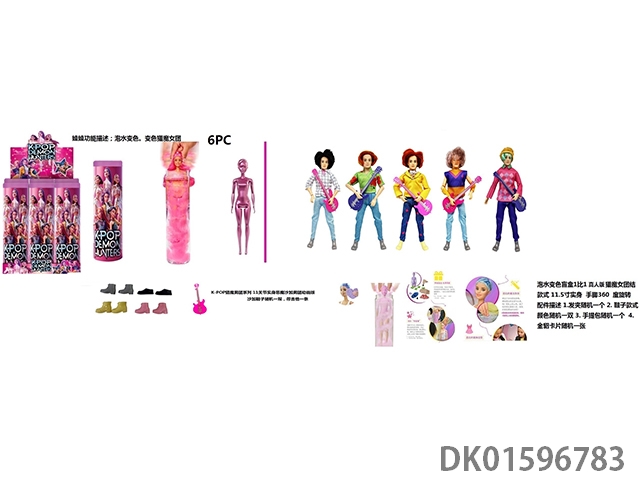 泡水变色 K-POP 猎魔男团动画版 11.5寸11关节实身Baby saia - ABBy - Mystery - Jinu-Romane 猎魔乐队 5款混装带吉他带鞋子6PCS/BOX