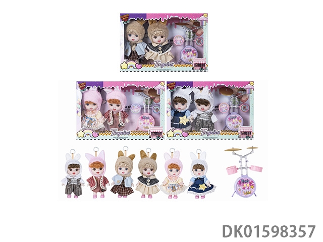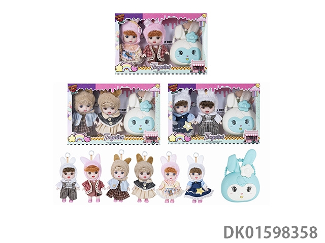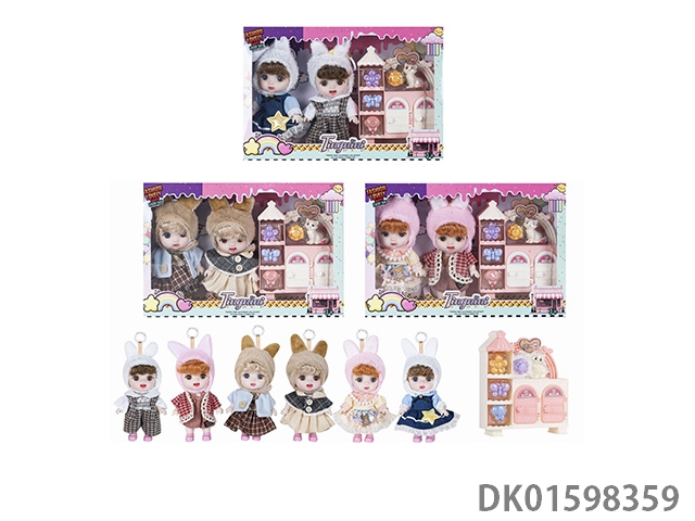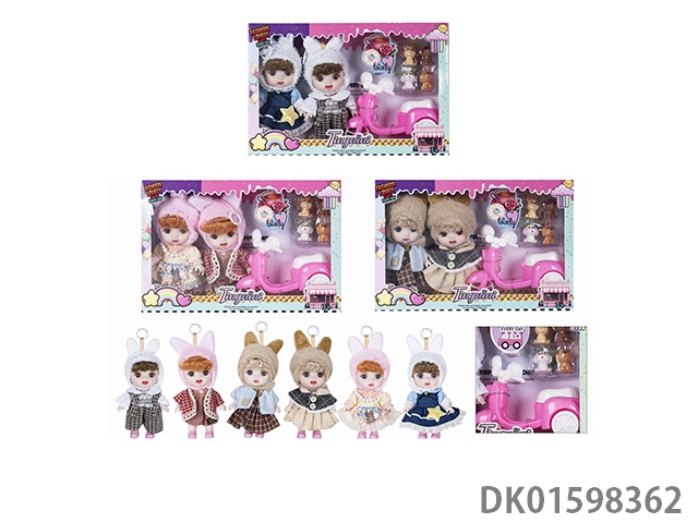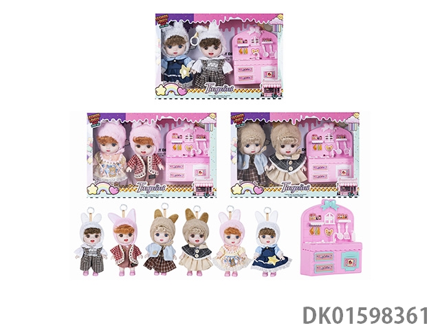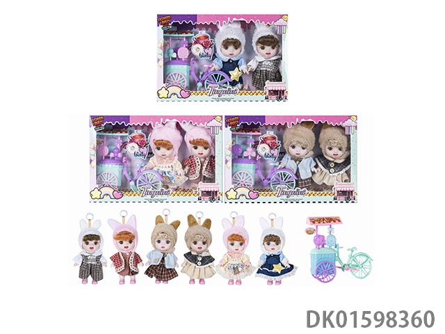 7寸全身搪胶3D眼时尚萌娃娃2只带配件3款混