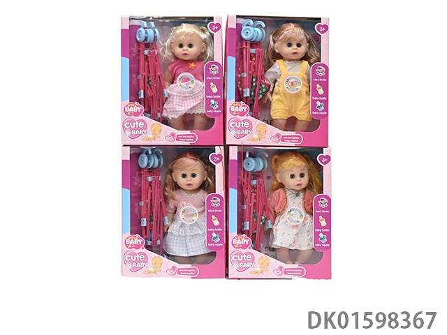 14寸空身音乐肥童活眼娃娃带推车配件4款混