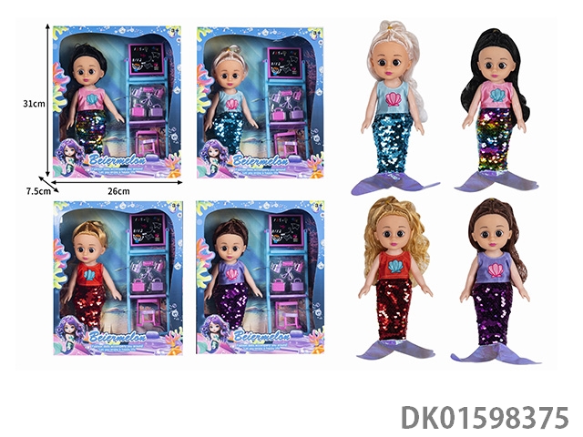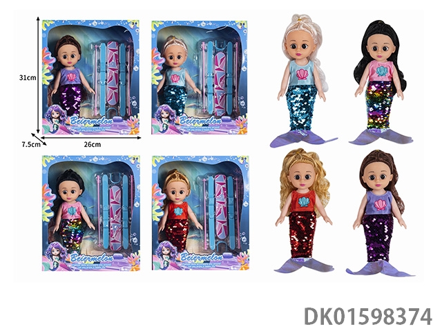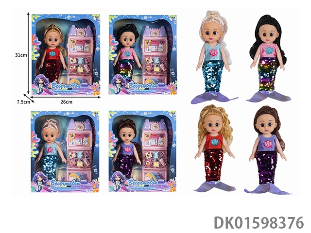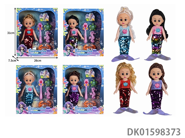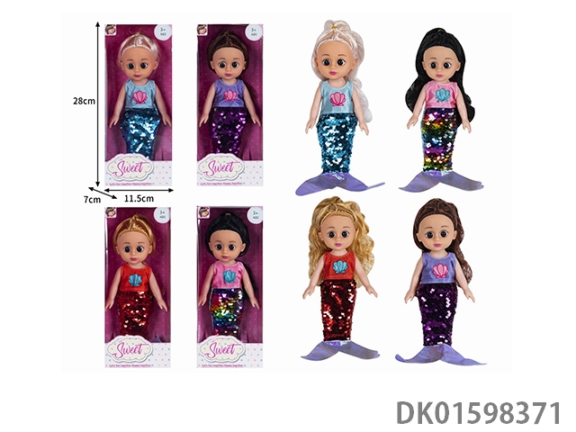 10寸全身搪胶3D眼时尚珠片美人鱼娃娃(带音乐)4款混