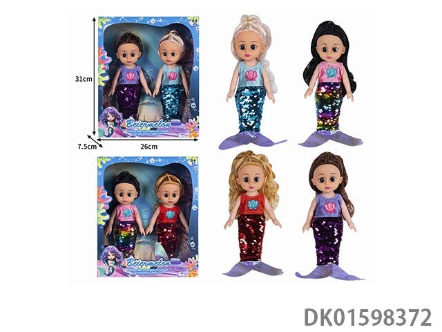 10寸双人全身搪胶3D眼时尚珠片美人鱼娃娃(带音乐)2款混