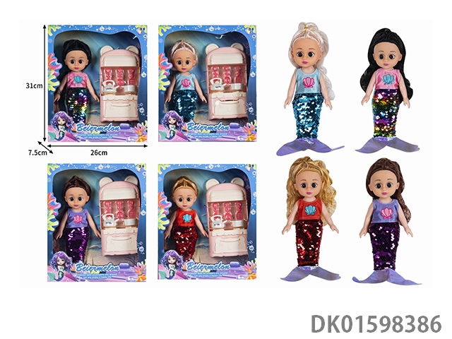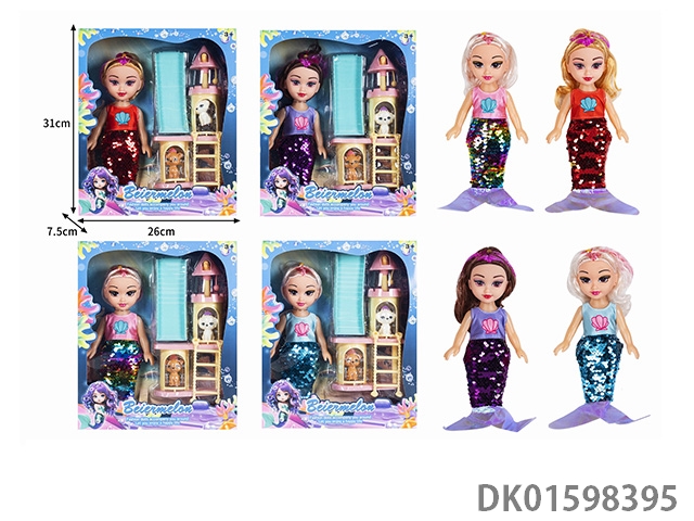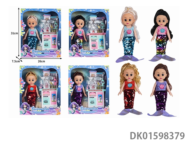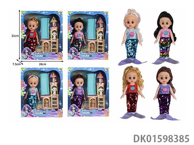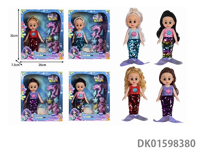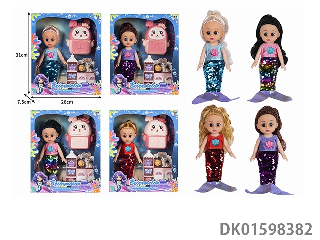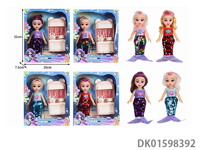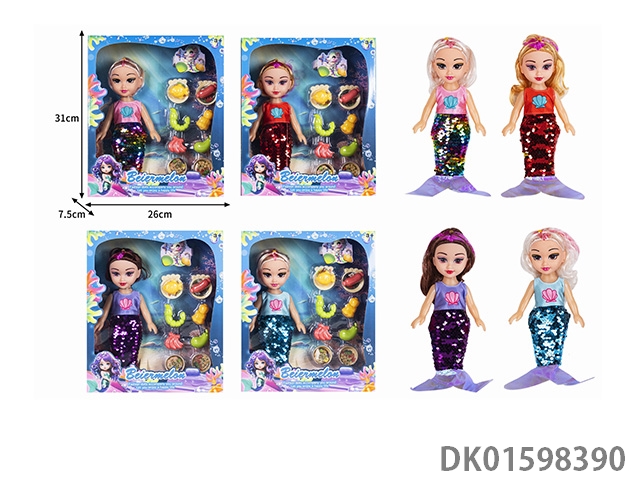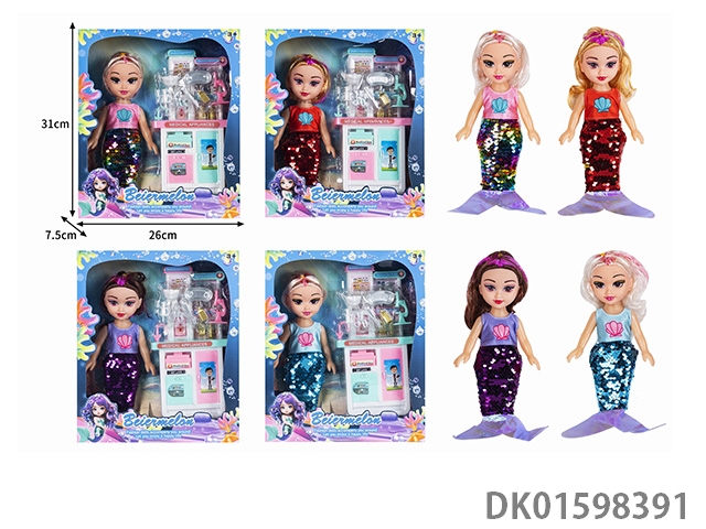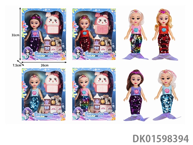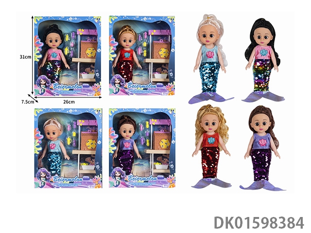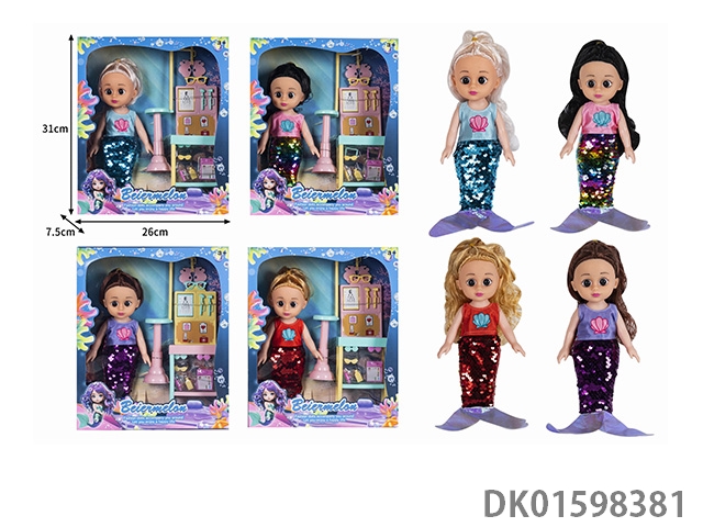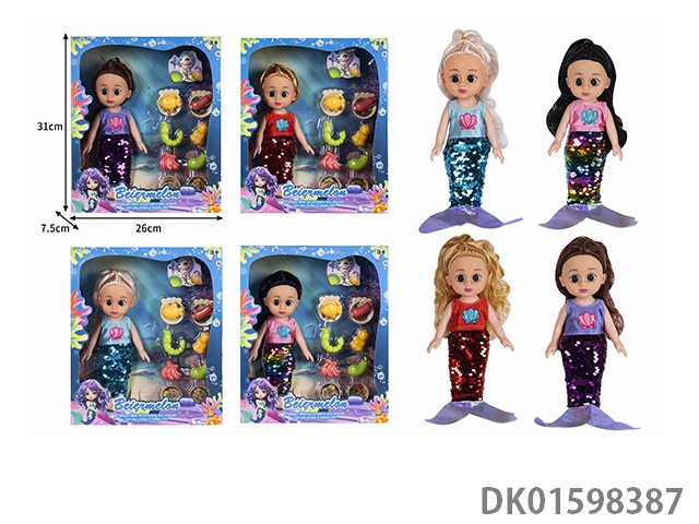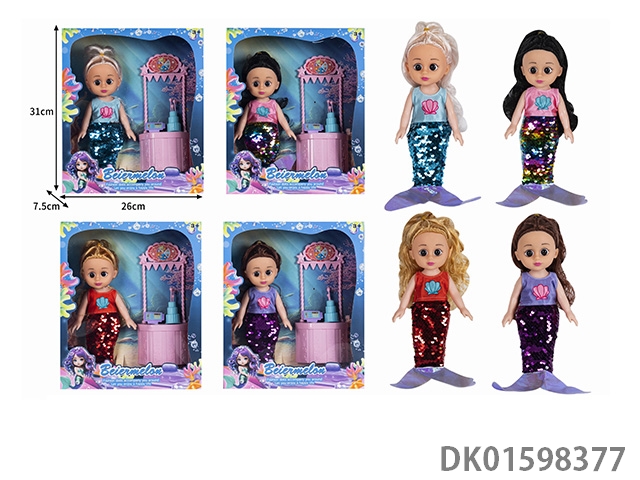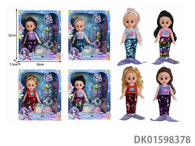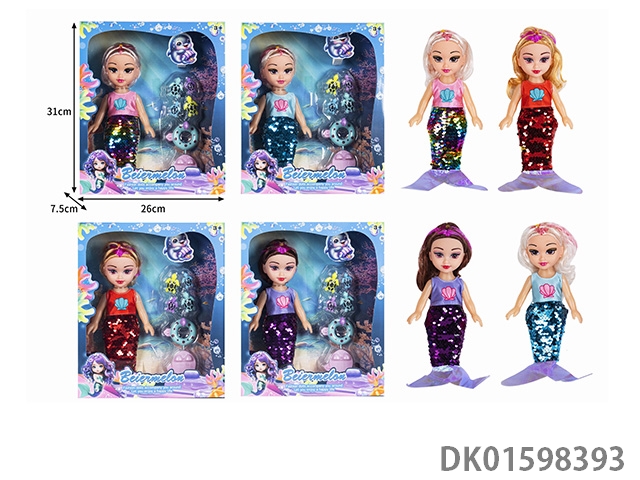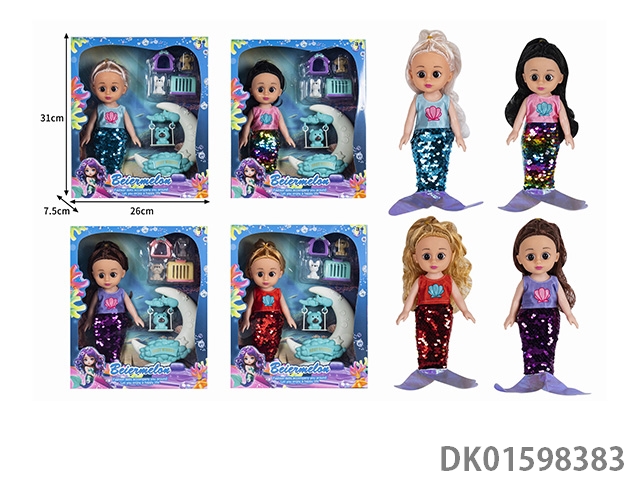 10寸空身时尚珠片美人鱼娃娃带配件(带音乐)4款混