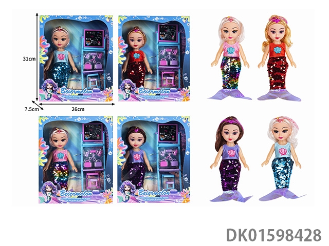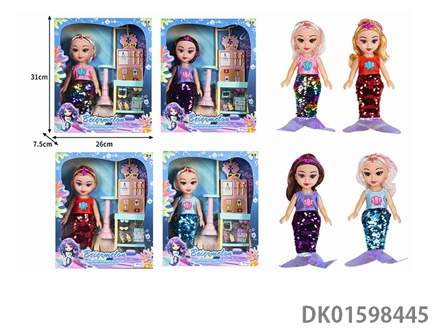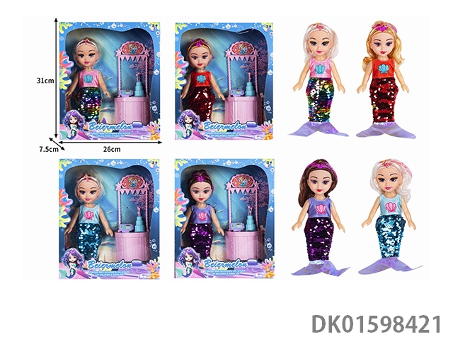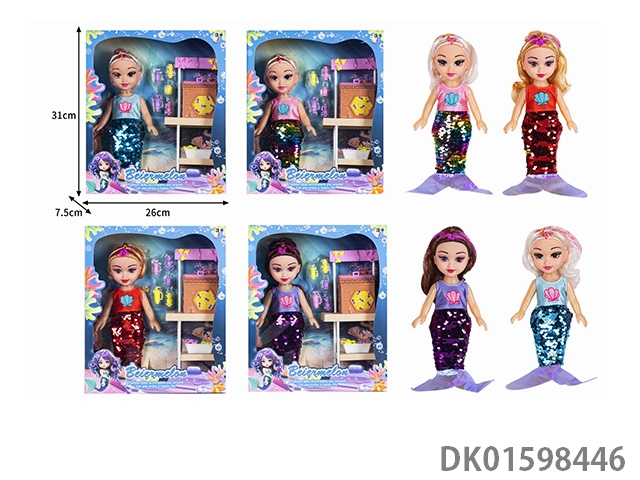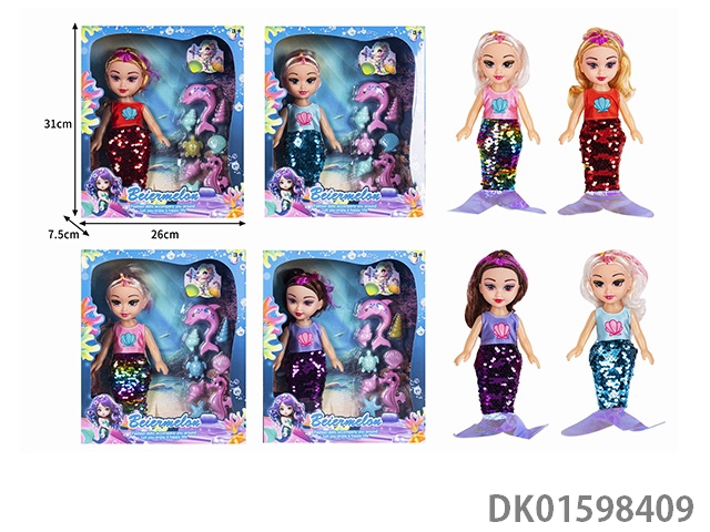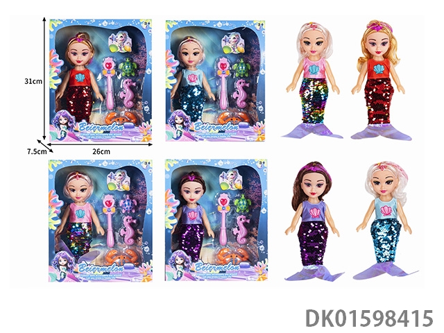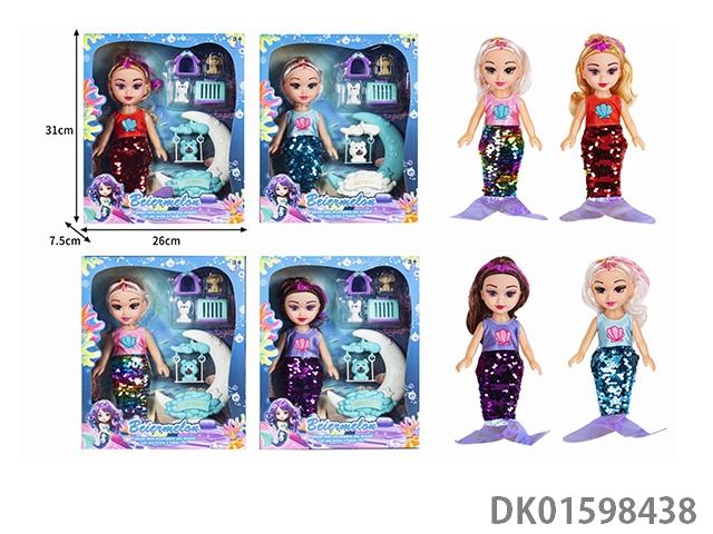 10寸空身时尚珠片美人鱼娃娃带配件(带音乐)4款混