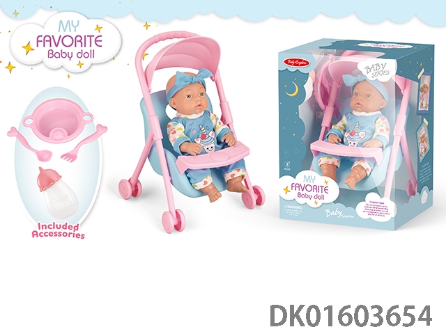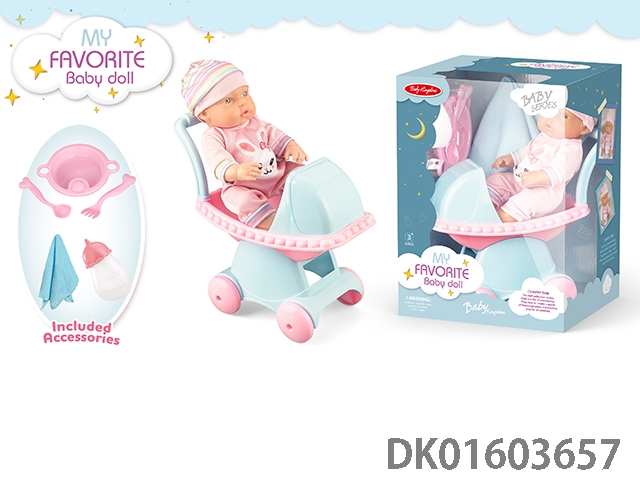 12寸公仔带IC+手推车+奶瓶+餐具,包3*AG13