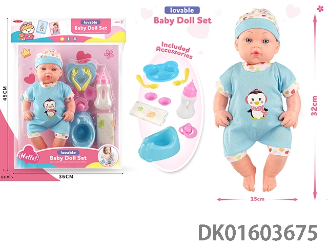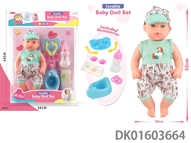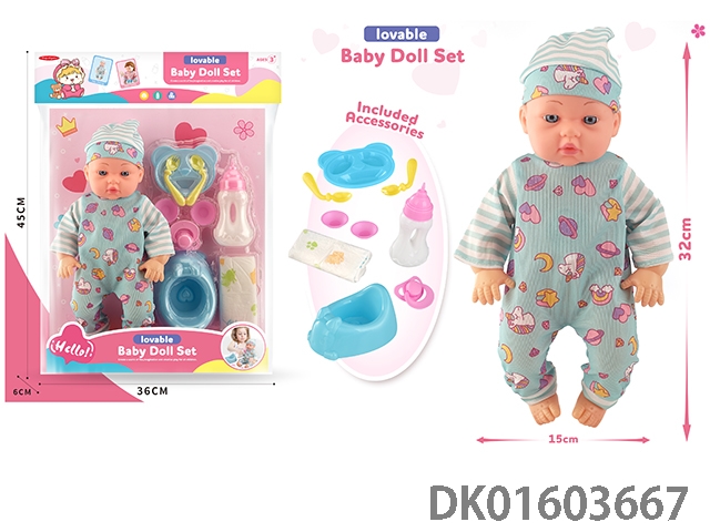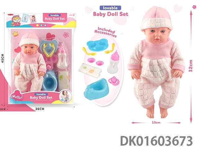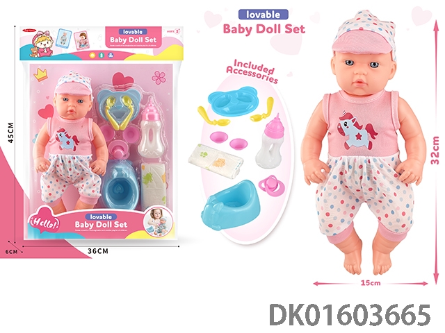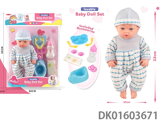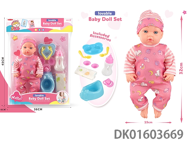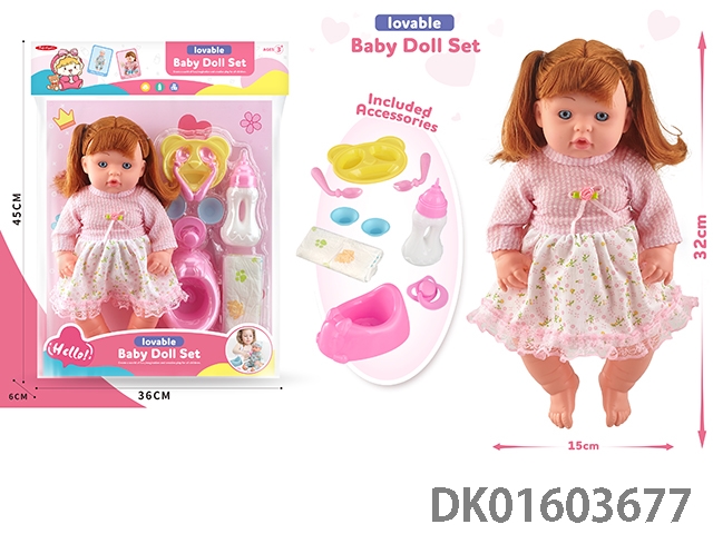 12寸公仔带IC+餐椅+奶瓶+餐具+奶嘴,包3*AG13