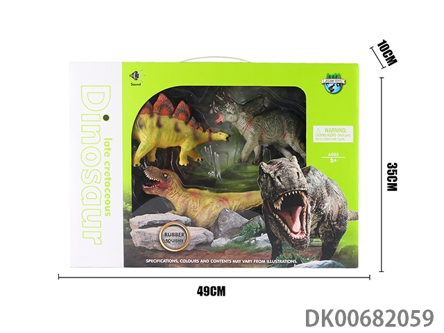 搪胶恐龙套装-霸王龙、3角龙、剑龙