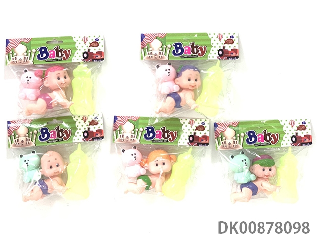 5寸搪胶2只爬娃带奶瓶,小动物