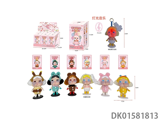 哭娃灯光音乐Crybaby现货海外泰国限定款哭娃眼泪工厂搪胶脸9关节毛绒盲盒手办挂件(6PCS/盒)