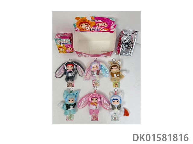哇库库二代盲盒现货填棉毛绒5D真眼狐狐兔兔捣蛋日记搪胶挂件娃库库(6PCS/盒)